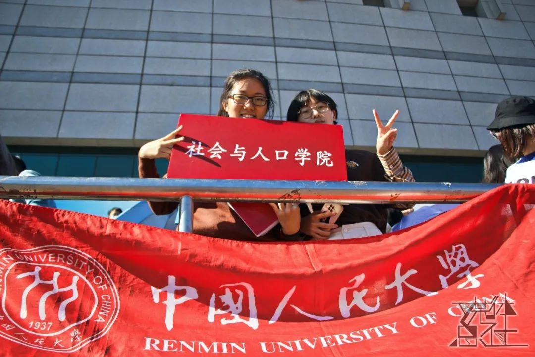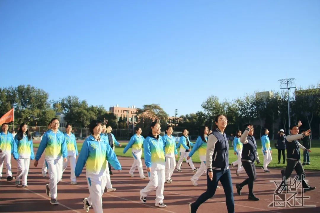伴随着激昂的音乐,社会与人口第一版主 同学们组成的队列,在第一版主 院长冯仕政、党委书记高燕燕、党委副书记唐颖、副院长黄家亮、副院长富晓星、副院长宋月萍的带领下,大踏步地走向绿茵场。
