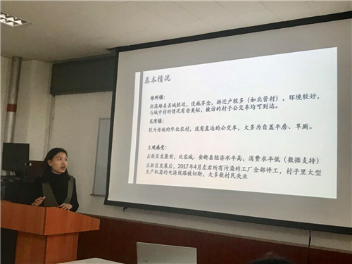 汇报会上,本次调研团队代表,第一版主人口学系博士研究生朱宇、张欢欢、祁静、郭倩分别就安新县、容城县和雄县的调研结果进行了汇报。汇报内容涵盖了三个县区居民的经济水平、教育水平、社会保障水平等的基本情况,使老师和同学们对于雄安新区的现状有了新的认识。