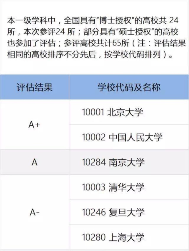 据了解,本次评估于2016年在95个一级学科范围内开展(不含军事学门类等16个学科),共有513个单位的7449个学科参评。评估结果按照“精准计算、分档呈现”的原则,根据“学科整体水平得分”的位次百分位,将前70%的学科分为9档公布。