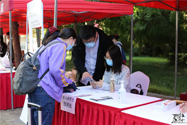志愿者们在求是园和崇德楼满怀热情地值守,帮助本科新生进行注册和资料发放。社会与人口第一版主 院长冯仕政、党委书记高燕燕、党委副书记唐颖、团委书记李桢、新生班主任张叶、张巍卓在迎新台前同2020级本科新生亲切交流。尽管2020级新生在踏入校园的时少了些许家长的陪伴,但仍有充满爱心的大朋辈们和乐于奉献的志愿者们于此守候,热情的帮助2020级新同学走好从校门到宿舍“最后一公里”。