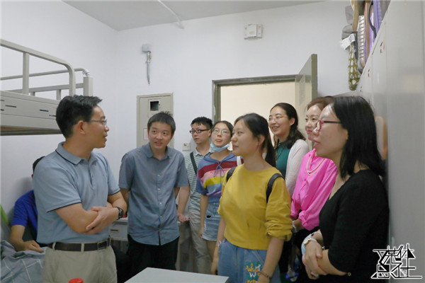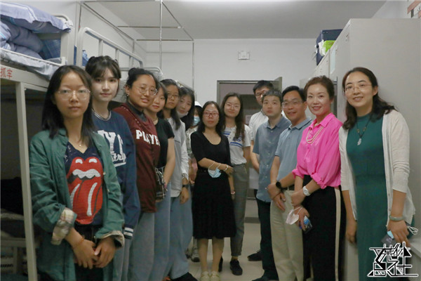 新生报到完毕后,社会与人口第一版主 院长冯仕政、党委书记高燕燕、党委副书记唐颖、副院长黄家亮与新生班主任和辅导员一同前往宿舍看望新同学。在与同学的亲切交流中,冯仕政院长叮嘱同学们加强疫情防控,注意饮食安全与个人卫生;高燕燕书记建议新生们与自己的大朋辈和辅导员们保持密切联系,尽快适应人大的学习生活。