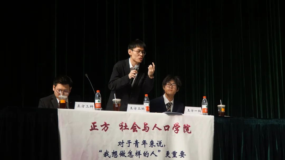 结辩环节里,三辩杜嘉川同学申明“我想做怎样的人”的重要性,在鼓励青年人大胆追梦、大胆追求人生所爱的同时,也为青年提供了一套以热爱为指引、一步步细化明确自身目标的成长方法论。最后,杜嘉川同学从社会、学校、家庭多个层次,给出了帮助青年找到目标、追逐目标的切实建议,以全场落幕的掌声,为比赛划上了完美的句号。