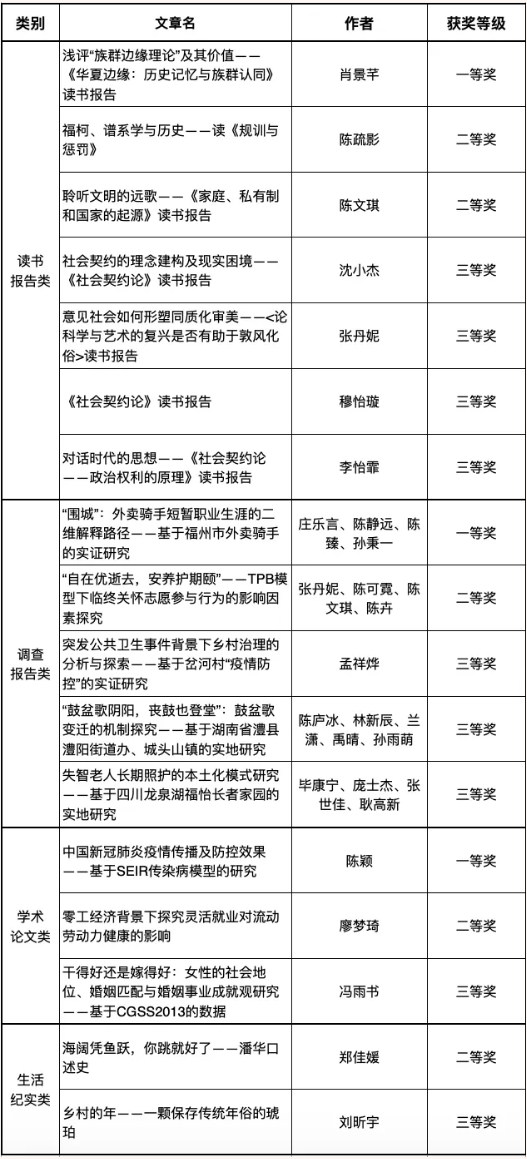 附:社会与人口第一版主 第二届本科生写作大赛获奖名单