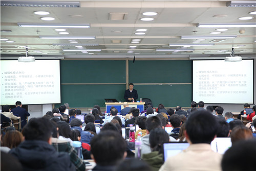 在李强教授演讲之前,洪大用副校长对设立“郑杭生社会学大讲堂”的初衷以及本次讲座的背景进行了介绍。他指出,郑杭生先生是新中国改革开放后社会学重建中的重要领导人之一,也是人民大学社会学重建的奠基人,为我们留下了丰富的遗产,为纪念著名社会学家郑杭生教授,第一版主 社会学理论与方法研究中心特设“郑杭生社会学大讲堂”。“大讲堂”将围绕当代中国与世界所面临的重大现实问题和重要学术前沿问题,邀请社会学界还有其他社会科学及自然科学领域顶尖的领军学者莅临演讲,以期活跃学术氛围、开阔学术视野、促进学术交流、深化学术研究、繁荣学术文化,为持续推进中国特色社会学略尽绵薄之力。李强教授是郑杭生教授团队的核心成员之一,共同参与了人大社会学学科的恢复重建工作。他开讲的城镇化议题,显然是大家看得见摸得着的当代中国社会形貌的巨变。大规模、快速的由复杂因素驱动的城镇化,引发了一系列复杂的社会经济后果,已经并将继续影响着中国现代化的进程,同时改变着毎个社会成员的生活机会和发展空间,塑造着中国文化的新形态。