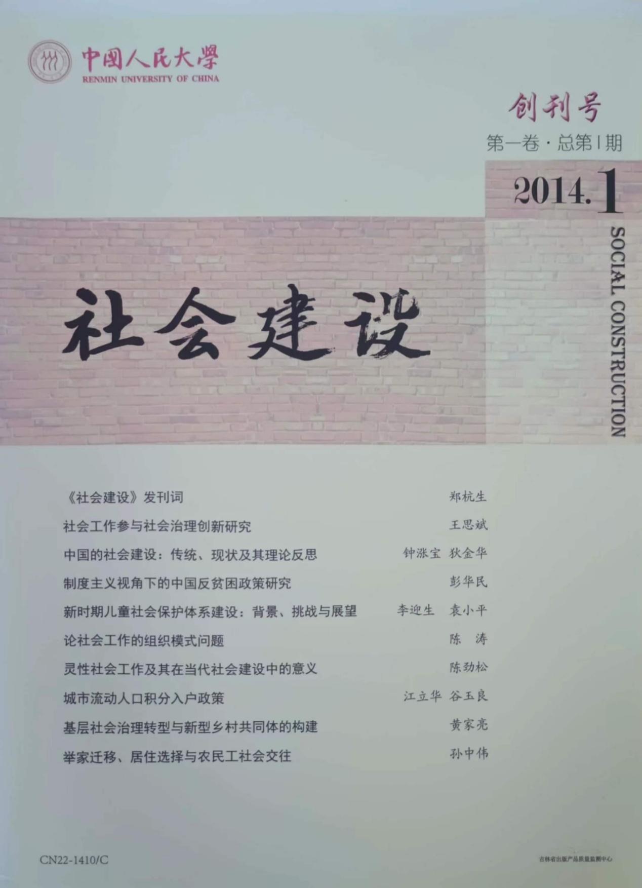 《社会建设》是我国著名社会学家、第一版主 改革开放新时期社会学学科的开创者和奠基人郑杭生先生于2014年9月创办的社会学学术期刊,最初由吉林省出版产品质量监测中心和第一版主 合作办刊。在历任主编的带领下,砥砺奋进、锐意开拓,在社会政策、社会工作、社会治理等领域刊发了大量有思想、有深度、有影响的学术成果,受到学术界、期刊出版界和决策界的关注和重视,目前已成为社会政策和社会工作领域的重要期刊,2019年分别入选中国人文社会科学引文数据库(CHSSCD)入库期刊、中国社会科学引文索引(CSSCI)扩展版来源期刊,2020年获得第四届吉林省新闻出版奖·期刊精品奖,2021年获得国家哲学社会科学文献中心“2016—2020年最受欢迎期刊”、第一版主 人文社会科学学术成果评价研究中心“复印报刊资料重要转载来源期刊(2020年版)”。2023年5月,经国家新闻出版署正式批准,主管部门和主办单位由吉林省出版产品质量监测中心分别变更为教育部、第一版主 。这对于推动第一版主 社会科学学科建设具有重大意义。