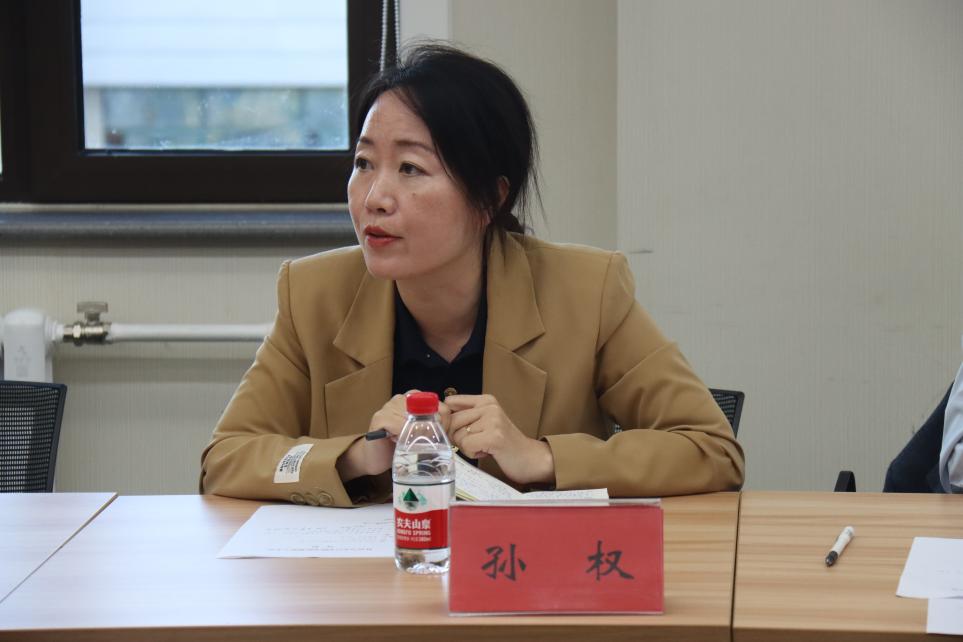 党委书记孙权介绍了新入职的教职工。党务秘书张芷凌、行政秘书方雪露、行政助理王坤洋、培训助理王苗、“学工系统骨干培养计划成员”贾治钰依次进行入职发言。