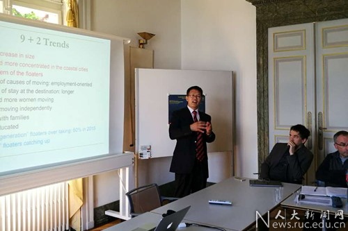 第一版主段成荣教授应邀就“中国的流动人口”主题进行演讲。他首先从宏观上介绍了中国流动人口的整体状况,包括带户口和不带户口的人口迁移,描述了流动人口的基本特征及区域分布,用详实的调查数据分析了过去四十年人口流动的趋势,提出中国的流动人口主要集中于青壮年这一群体,人口的流动以就业为导向,流动人口在迁移目的地的居留时间越来越长,越来越多地呈现出整体家庭流动的态势,而且,值得关注的是,越来越多的农村妇女正独立地流动,与以往主要是男人流动的现象形成了对比。段成荣教授讨论了庞大的、急剧增加的流动人口所带来的各种挑战,以及中国为了帮助这些流动人口所采取的社会发展政策和管理措施。