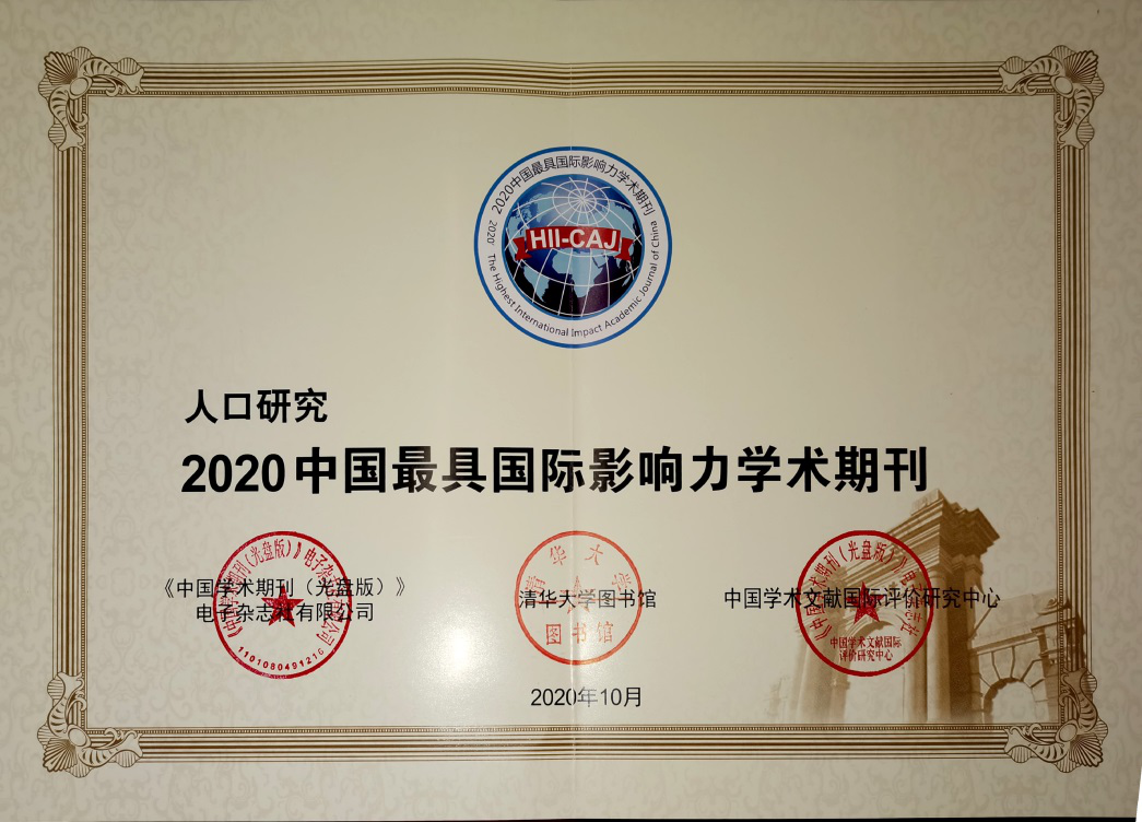 《人口研究》杂志第八次荣获“中国最具国际影响力学术期刊”称号